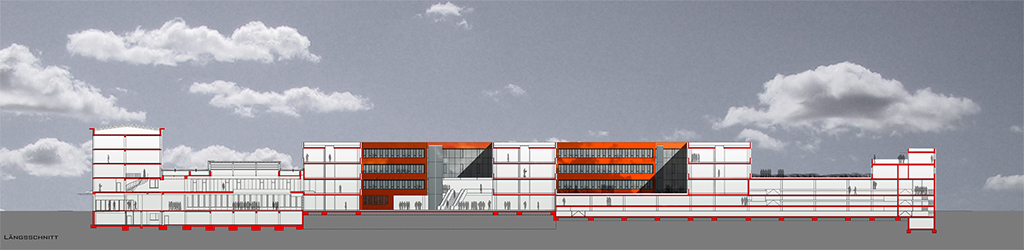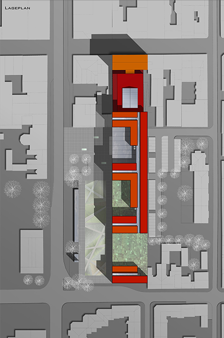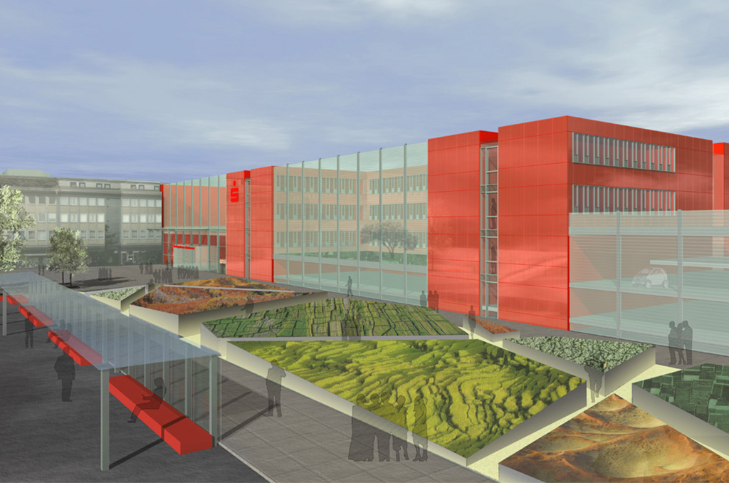 Die Sparkasse in Oberhausen plante einen Neubau Ihrer Zentrale im Zentrum von Oberhausen. Zusammen mit dem Architekturbüro Hausmann aus Oberhausen haben wir an dem Wettbewerb teilgenommen. Der Entwurf sieht eine gestaffelte Hofstruktur auf dem schmalen und sehr langen Grundstück vor. Zur Hauptstraße hin wurde die bestehende Fassade aufrecht erhalten und dort eine Geschäftsstelle eingeplant.