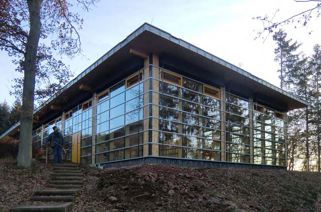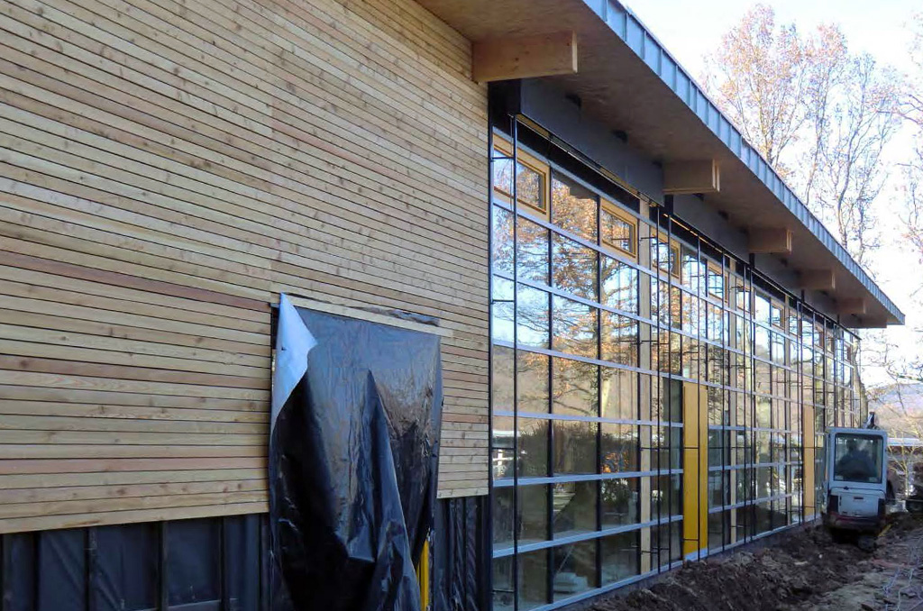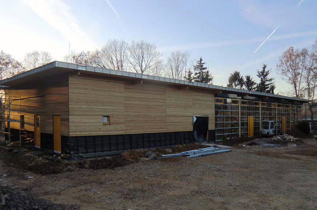 Der Neubau einer Schulmensa in Schleiden erfolgt in Holzbauweise. Das Gebäude teilt sich in einen geschlossenen Küchenbereich inkl. Nebenräumen und einen vollverglasten und lichtdurchfluteten Speiseraum. Das von Andreas Lebender entworfene Gebäude fügt sich als neuer Mittelpunkt in das Schulzentrum ein.