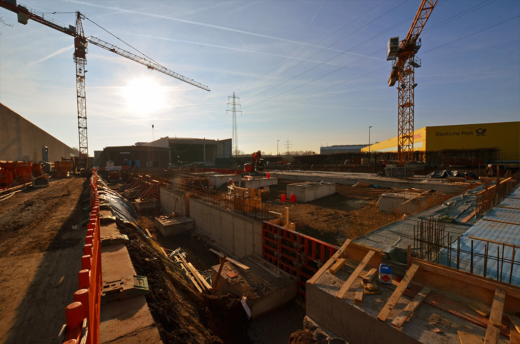 Der Automobilzulieferer TMD Friction erweitert umfangreich sein Werk im Essener Stadthafen. Hier werden diverse Hallen, Werkstatt- und Verwaltungsbereiche neu gebaut bzw. im Bestand angepasst. Die Arbeiten finden im laufenden Betrieb statt.
