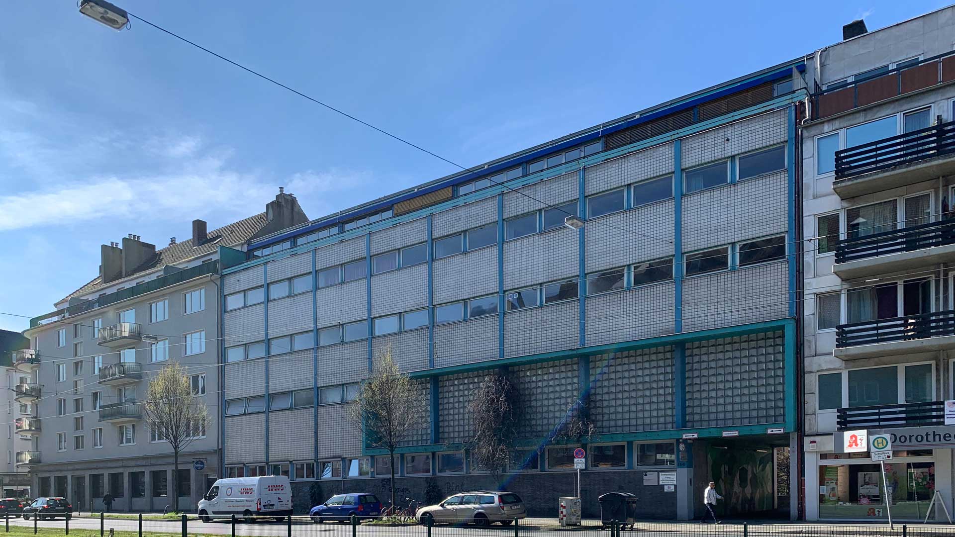 Die Anne-Frank-Realschule in Düsseldorf wird im Rahmen einer Sanierungsmaßnahme energetisch saniert.